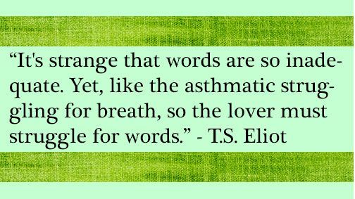 2. If you are addressing your poetry to a spouse, a lover or a friend, don’t rely on conventional stereotypes. Begin with words that are familiar too you both, or perhaps words that have lost their power over time.